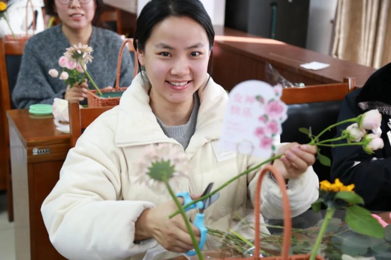 活动现场,花香四溢,彩球飘扬,节日氛围浓厚而温馨。花艺师为大家讲解了插花艺术的基础知识,以及花材的选择、色彩的搭配、造型的设计等。女干警们跃跃欲试,精心地挑选主花、配花、配草等花材,在花艺师的指导下修枝剪叶,构思花材的排列和组合,创作出一篮篮高低错落、疏密有致,既有艺术性也富有动感的独特插花作品,以花语诠释检察人的刚柔并济。