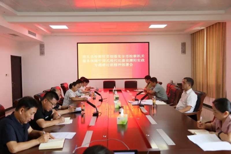 8月9日,南乐县检察院召开党组扩大会,学习传达全国大检察官研讨班、全省检察机关服务保障中国式现代化建设河南实践专题研讨班、全市检察机关服务保障中国式现代化建设濮阳实践专题研讨班精神,研究贯彻落实意见,党组成员、专委、各部室主任参加会议,党组书记、检察长江艳伟主持会议。