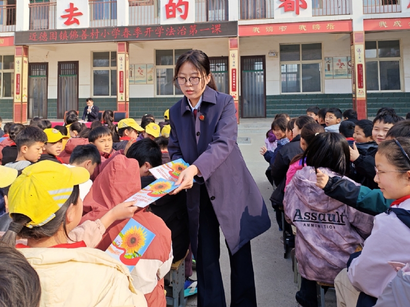 为加强未成年人法治教育,引导少年儿童从小树立法治意识、远离欺凌和诈骗,2026年3月20日,南乐县人民检察院干警马胜磊走进近德固镇佛善村小学,为400余名师生开展“送法进校园”法治专题宣讲活动。